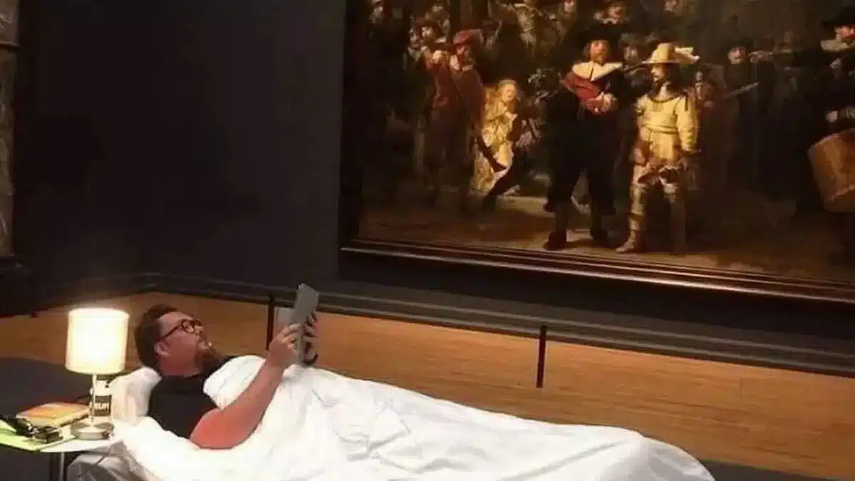 El Rijksmuseum de Ámsterdam permitió por primera vez que un visitante pasara la noche en una de sus salas y el afortunado fue Stefan Kasper, profesor de arte quien tuvo la oportunidad de dormir junto al cuadro La ronda de noche de Rembrandt, tras convertirse en el visitante número 10 millones desde la reapertura del museo en 2013.