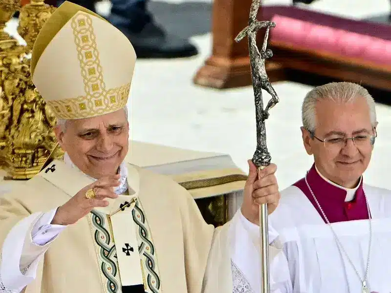 Durante la misa, también recibió los símbolos papales: el palio y el anillo del pescador.