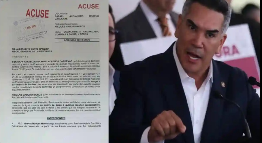 Moreno, también senador, señaló que la denuncia busca que el mandatario venezolano responda ante la justicia mexicana por presuntos nexos con el crimen organizado y recordó que recientemente el gobierno de Estados Unidos ofreció una recompensa de 50 millones de dólares por información que lleve a su captura, acusándolo de “utilizar cárteles de México y Venezuela para el tráfico de drogas”.