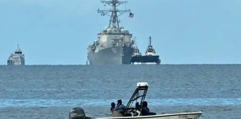 El destructor lanzamisiles USS Gravely fue visto frente a la capital, Puerto España, donde permanecerá atracado hasta el jueves, según confirmó el gobierno trinitense.
