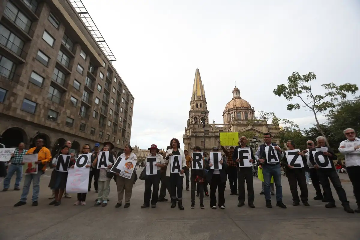 “Fuera (Pablo) Lemus, fuera Lemus (gobernador de Jalisco)” y “No al tarifazo, no al tarifazo”, fueron las consignas más constantes durante la marcha que fue del parque Revolución hacia plaza de armas, ruta que también se ha convertido en la más usada para manifestar la inconformidad.